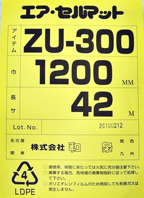 【50本】ZU300エアセルマット ロール原反1200mm×42mです。ZUシリーズ二層品の中で最も強力な緩衝力の梱包材・緩衝材・包装資材・梱包資材